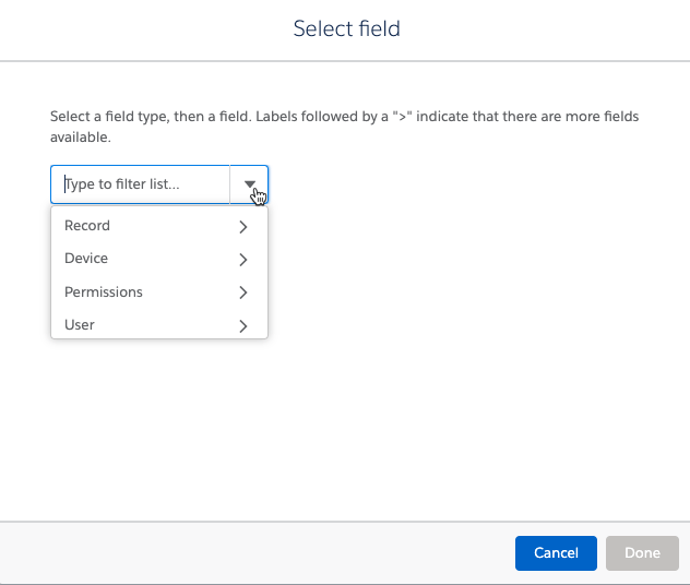 You can either use the Record Field option to find the field or you can use the Advanced option which provides even further granularity, including lookups.