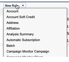 - Pick the Object you want to match against, in this case Account (Organization is a relabel specifically for the NPSP)