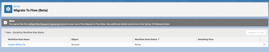 2. Select the Workflow you want to Migrate and then click Migrate to Flow (see screenshot above)