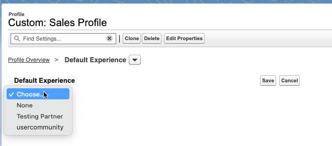 “All members who are assigned the user role are associated with the selected default experience. When they receive email notifications about network-agnostic objects, like accounts, cases, and opportunities, links in the notification emails lead back to the default experience. When they receive their new-user email or notifications about password resets, links in those messages also lead back to their default experience.”