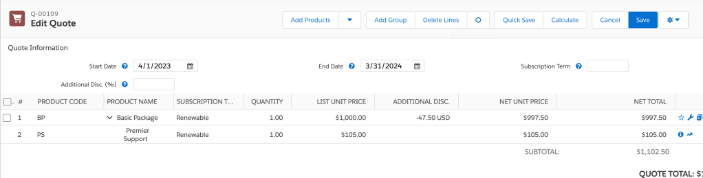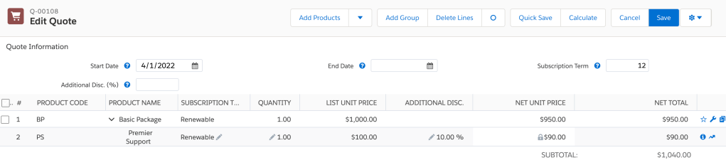 This article is a perfect example of that. Recently I had a client giving discounts on their Percent of Total products, and we were introducing Renewals into the mix. They have their Renewal Pricing Method set to Same, and I noticed that the discount was not coming over when creating the Renewals.